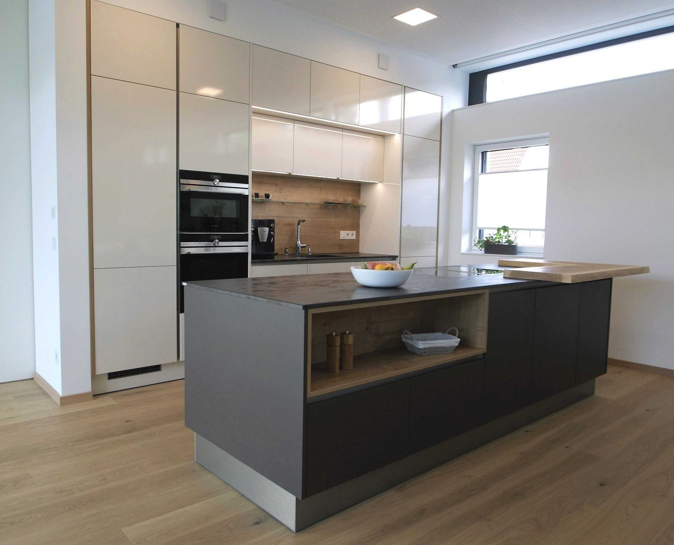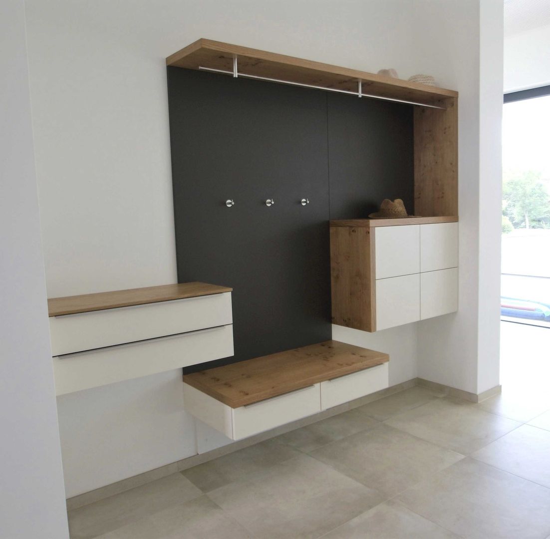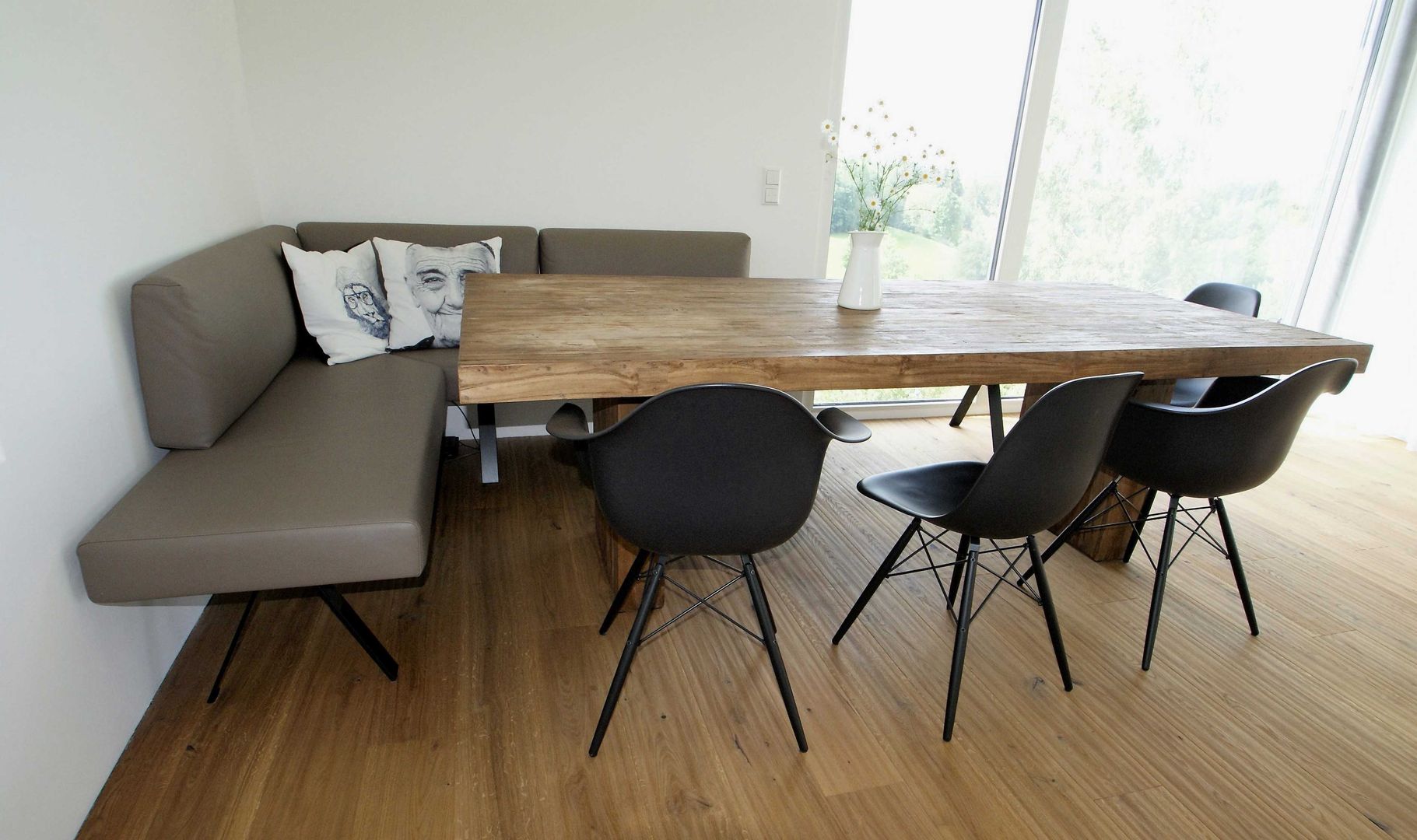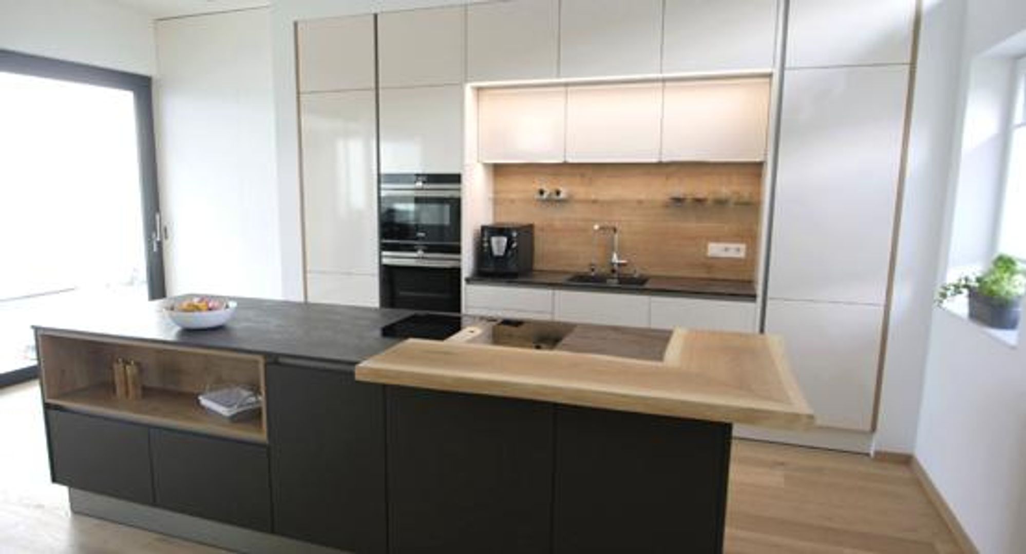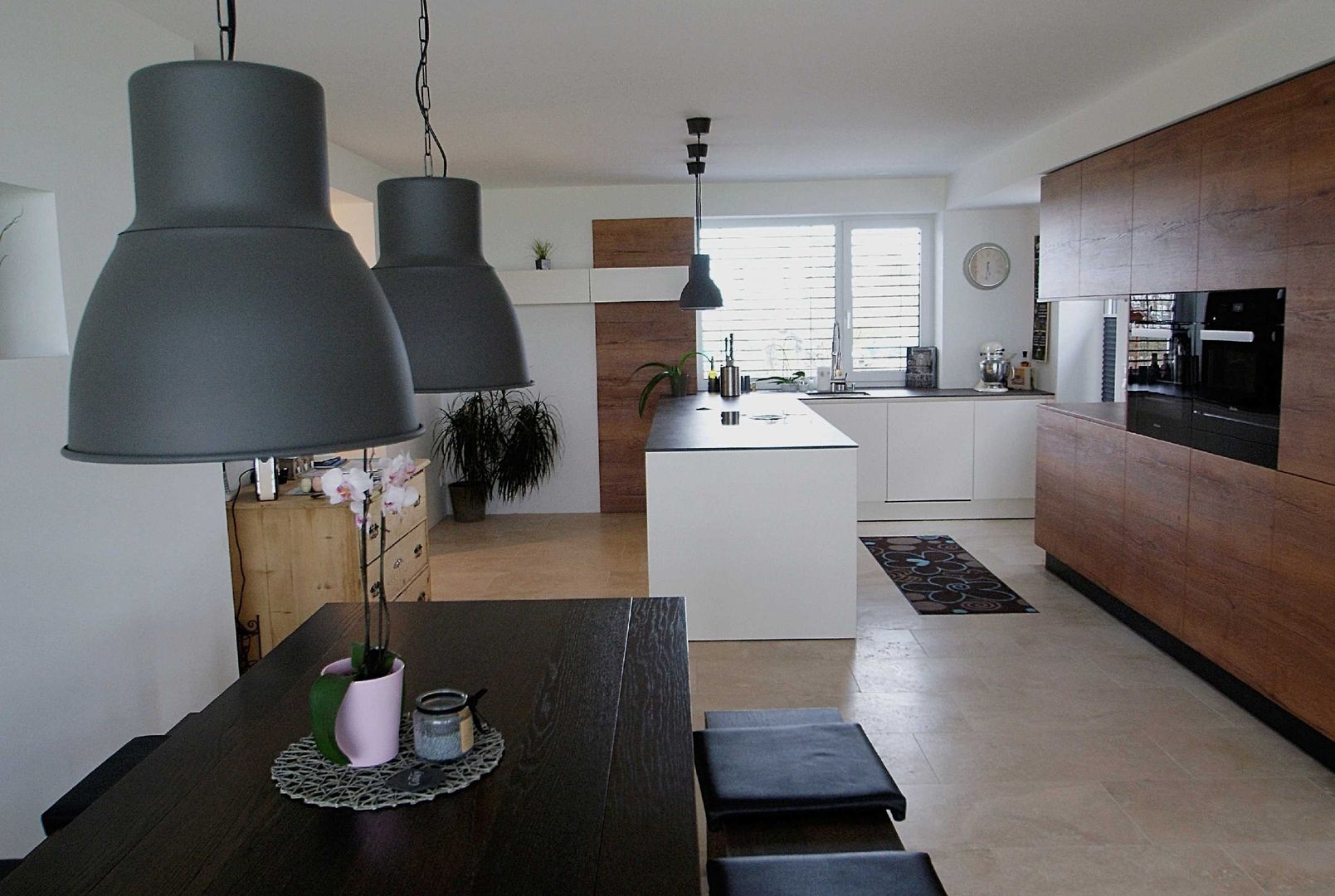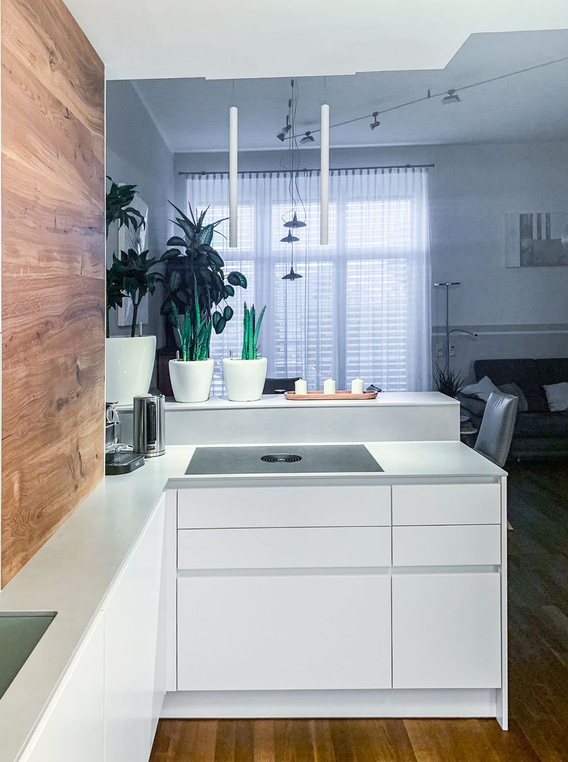 schlichtes Weiß/Grau trifft auf Holz
