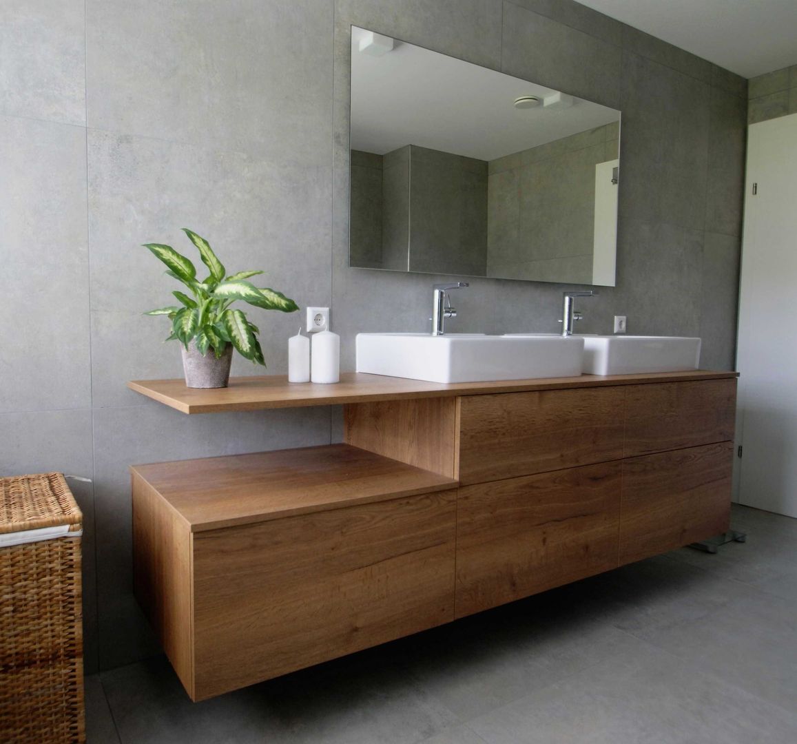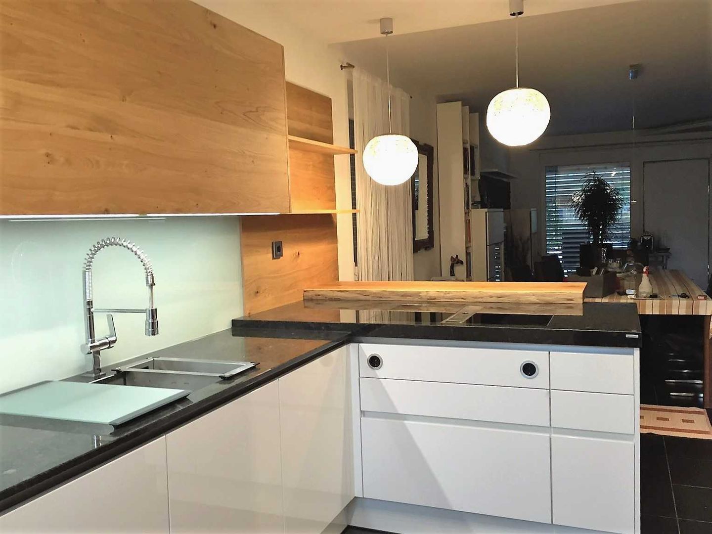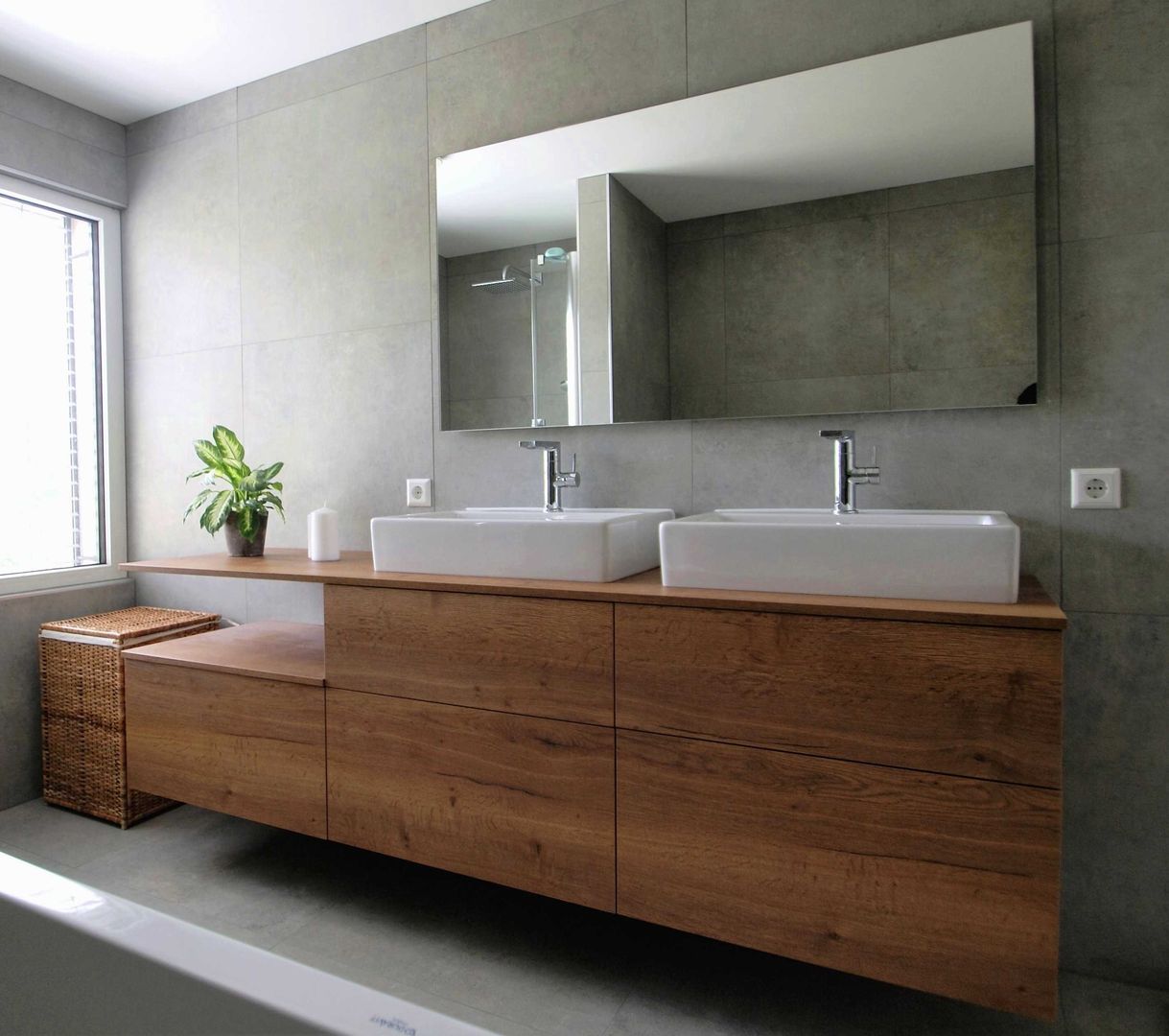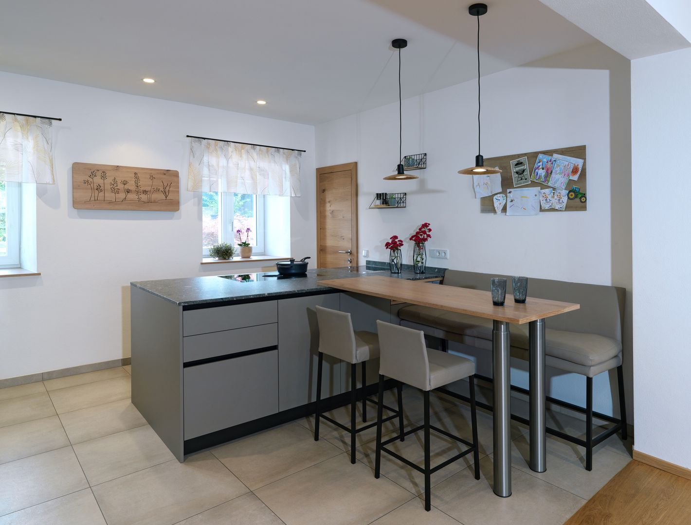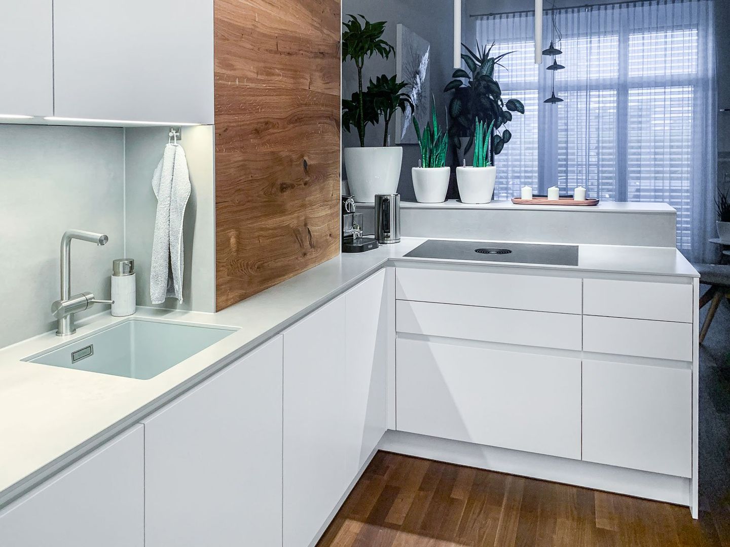schlichtes Weiß/Grau trifft auf Holz