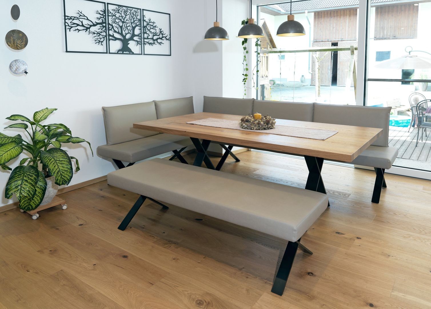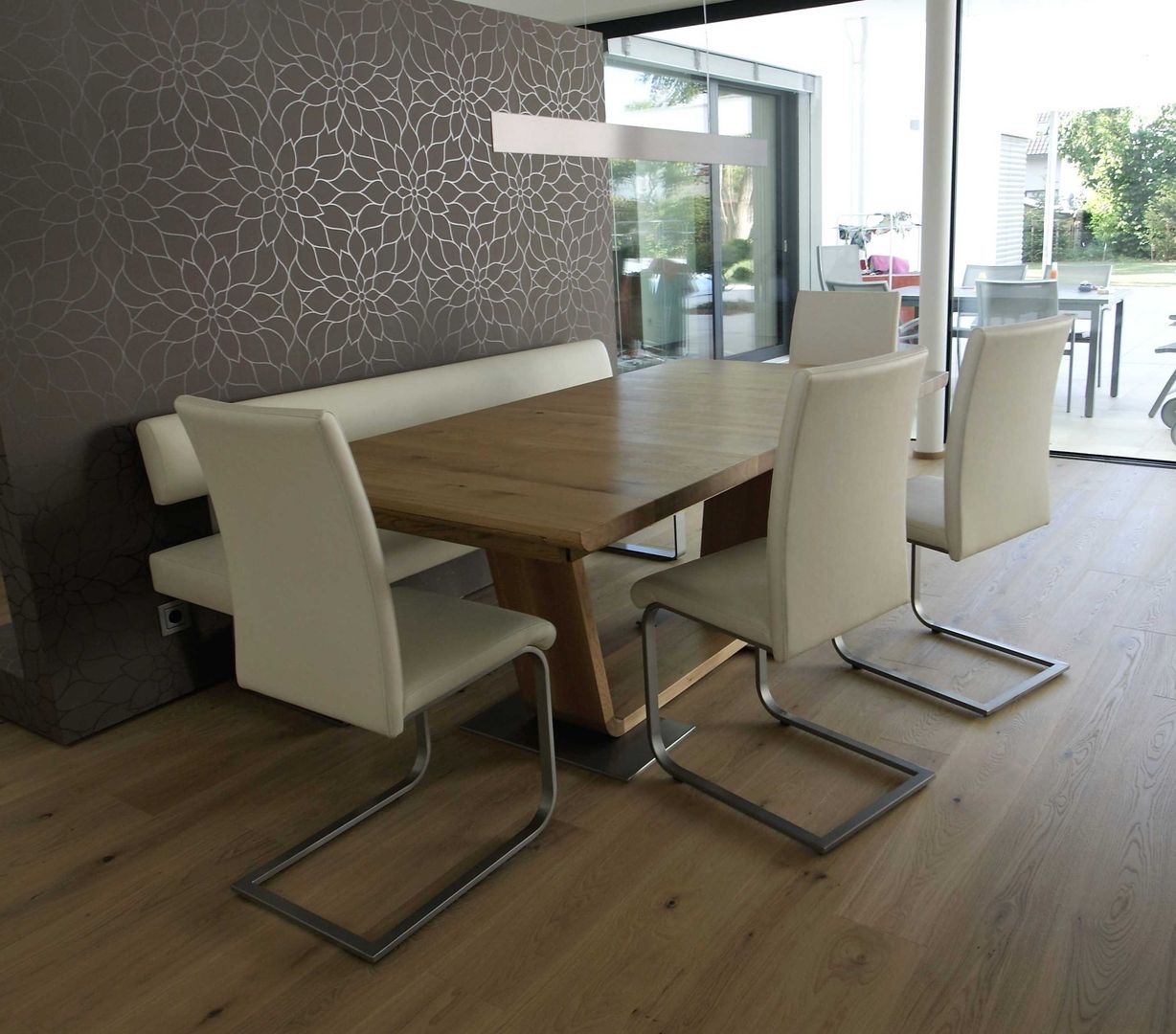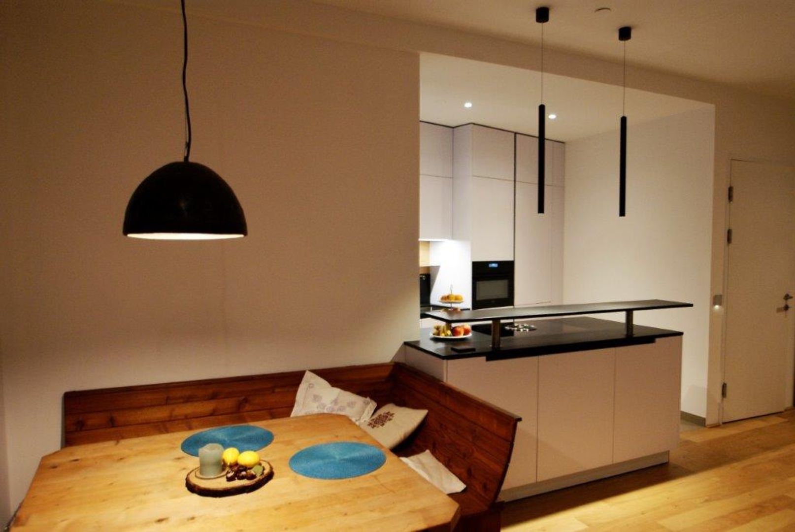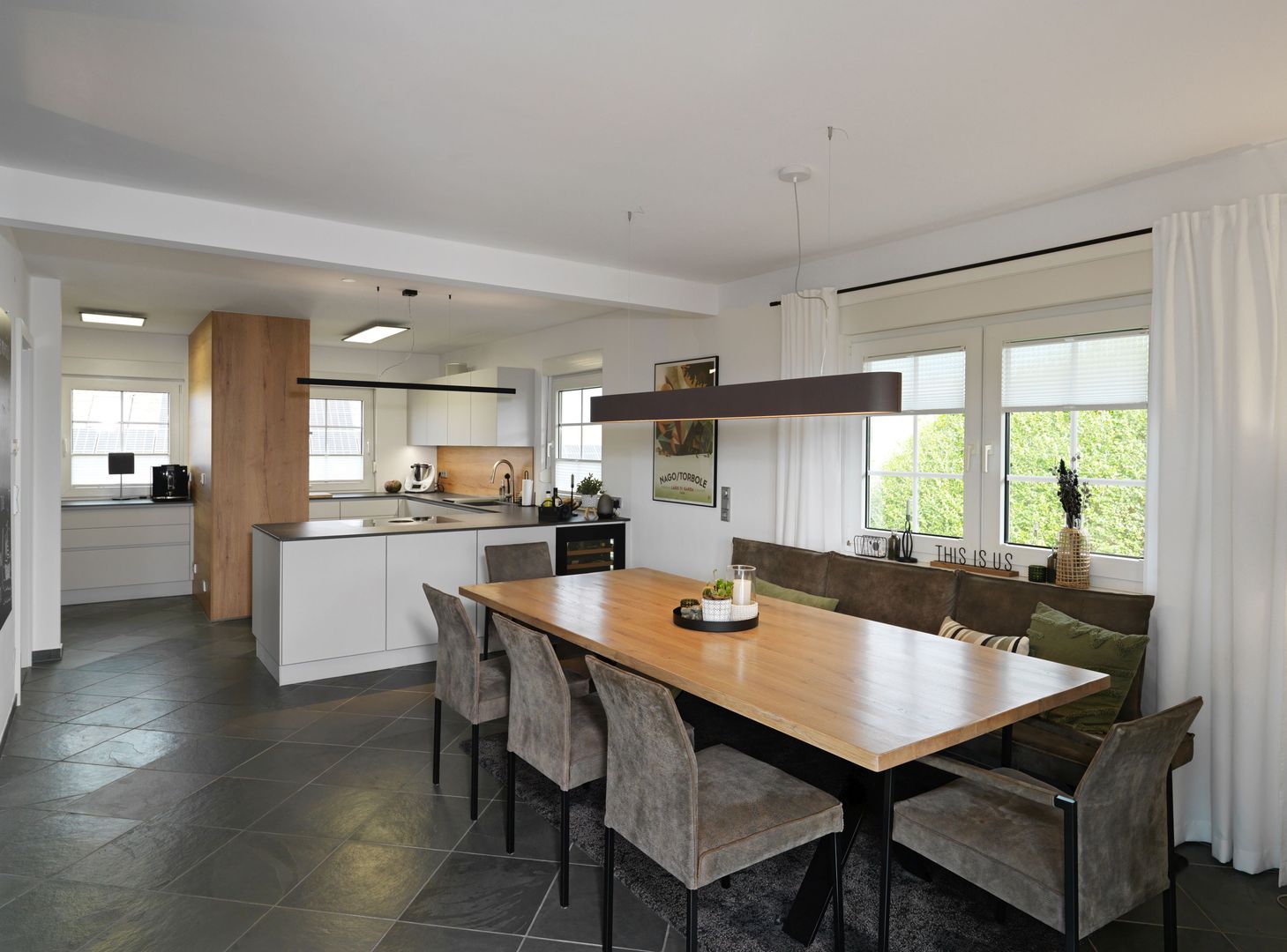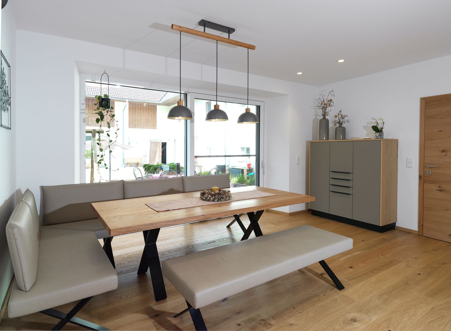 schlichtes Weiß/Grau trifft auf Holz