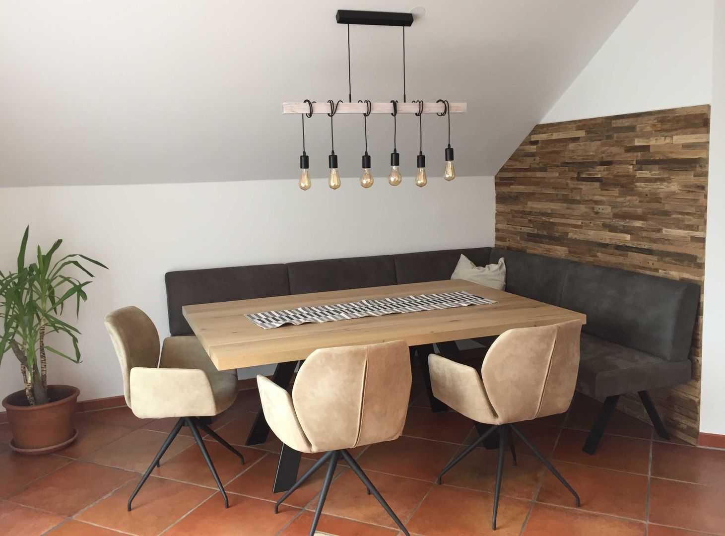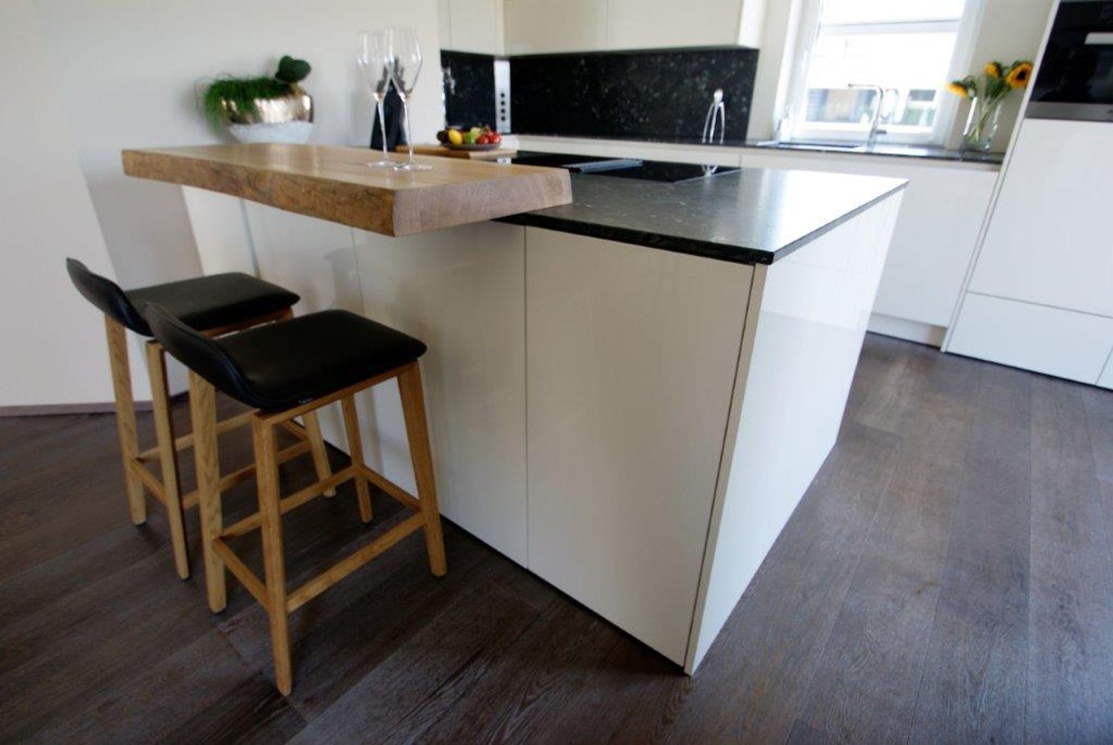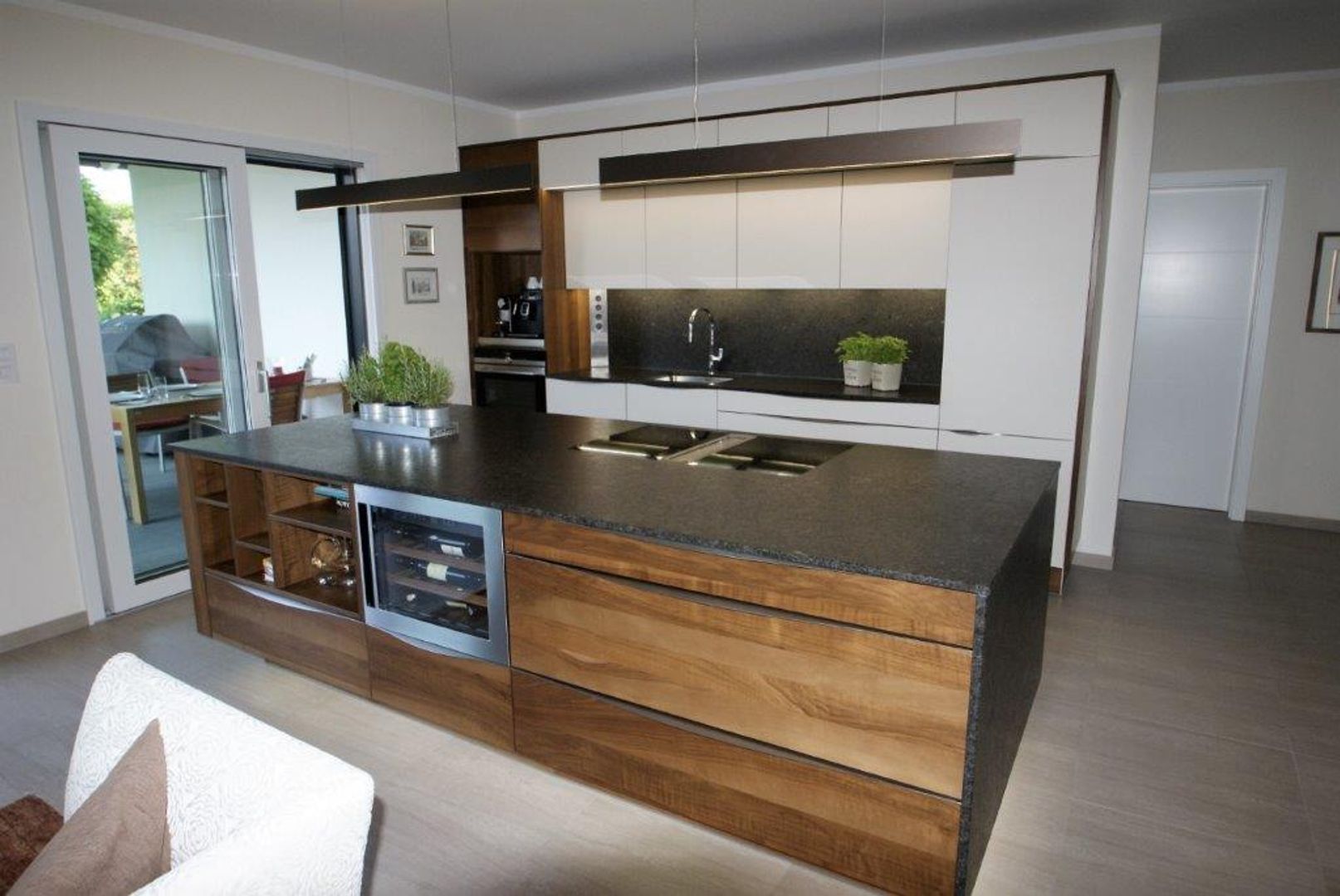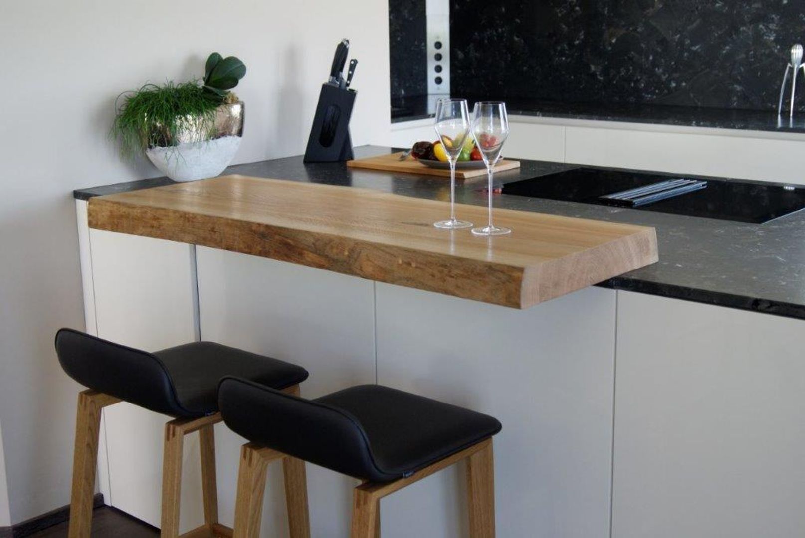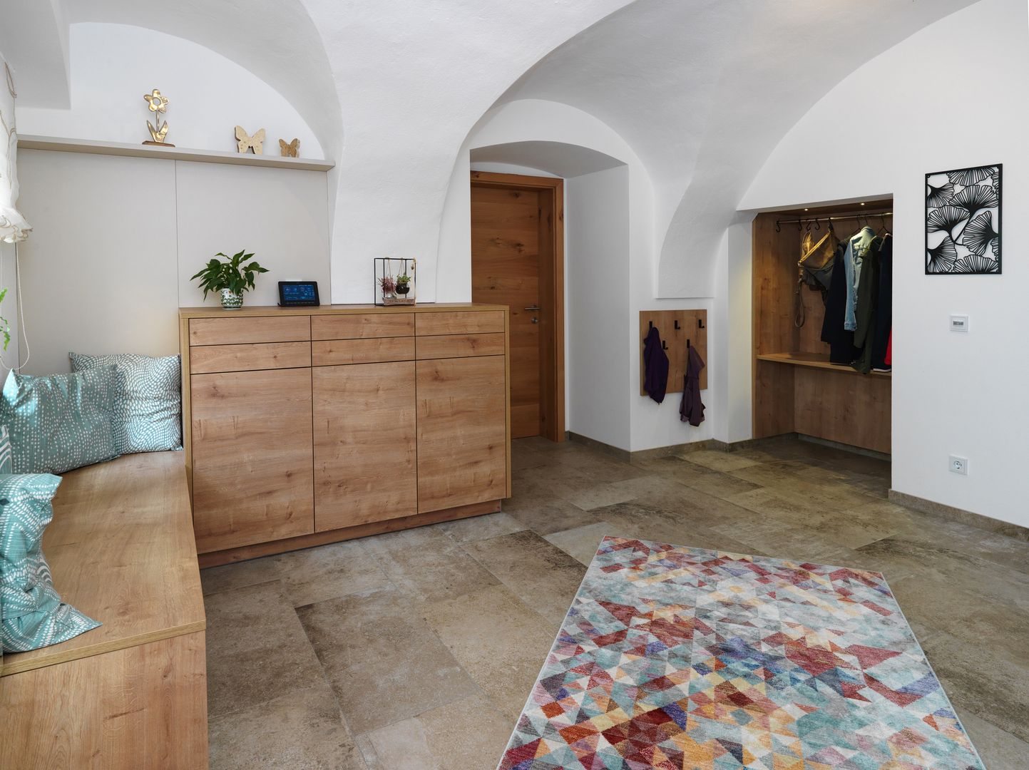 schlichtes Weiß/Grau trifft auf Holz