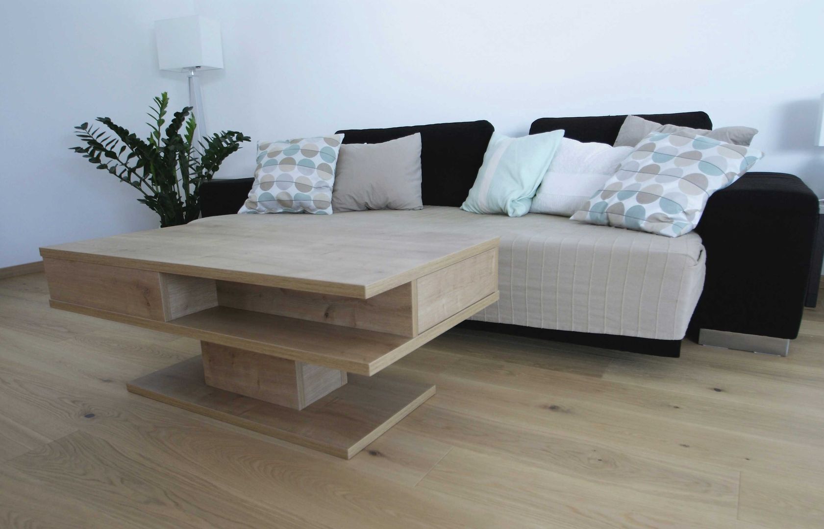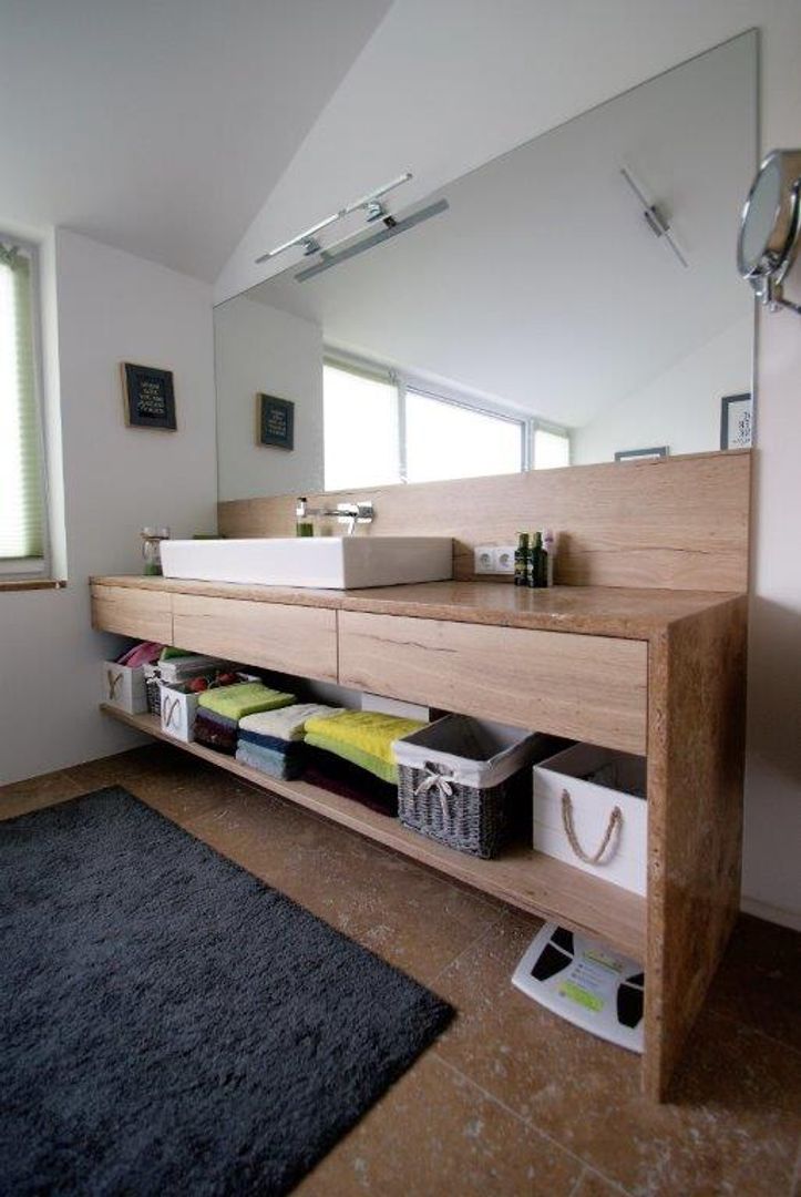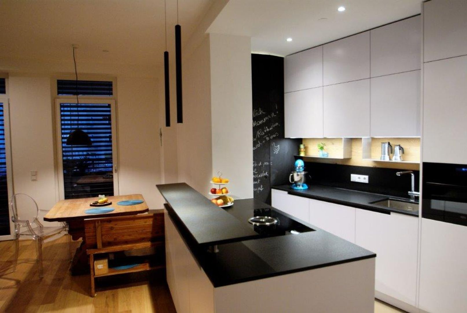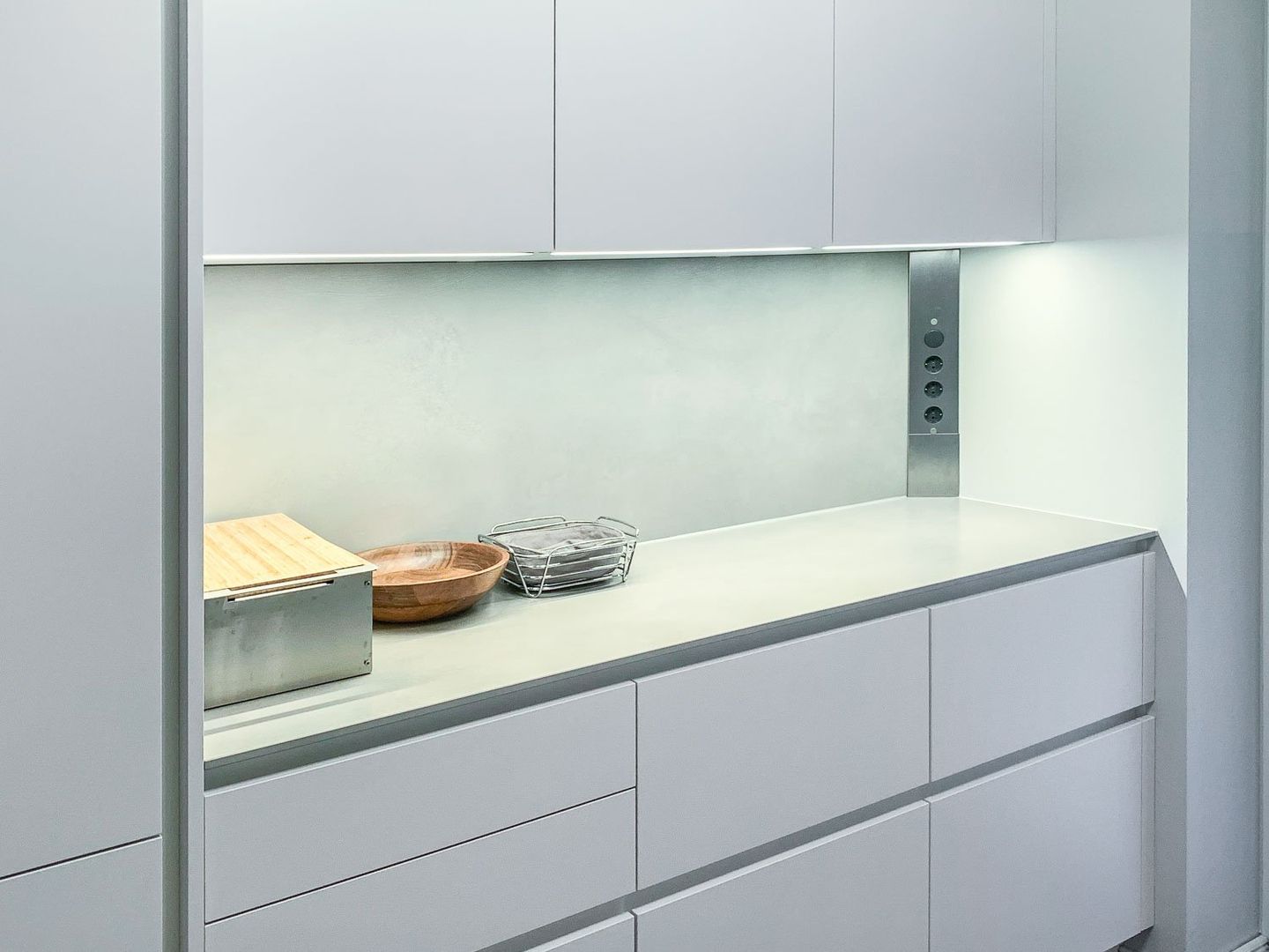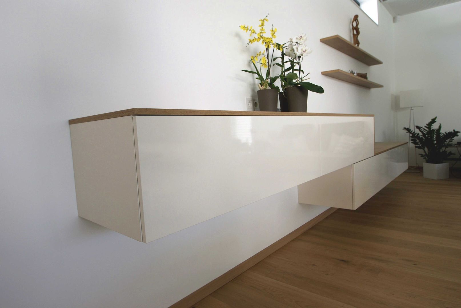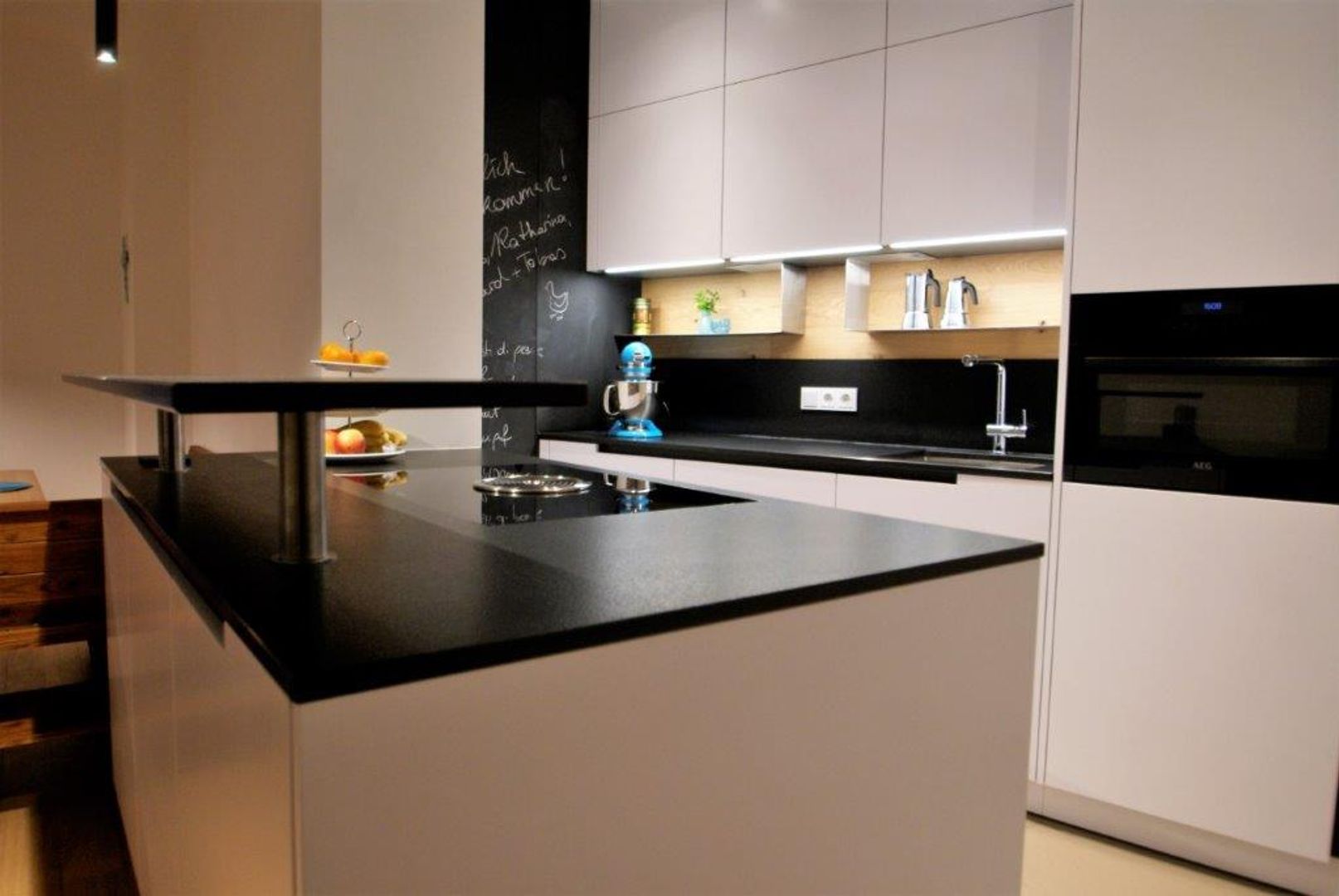 schlichtes Weiß/Grau trifft auf Holz