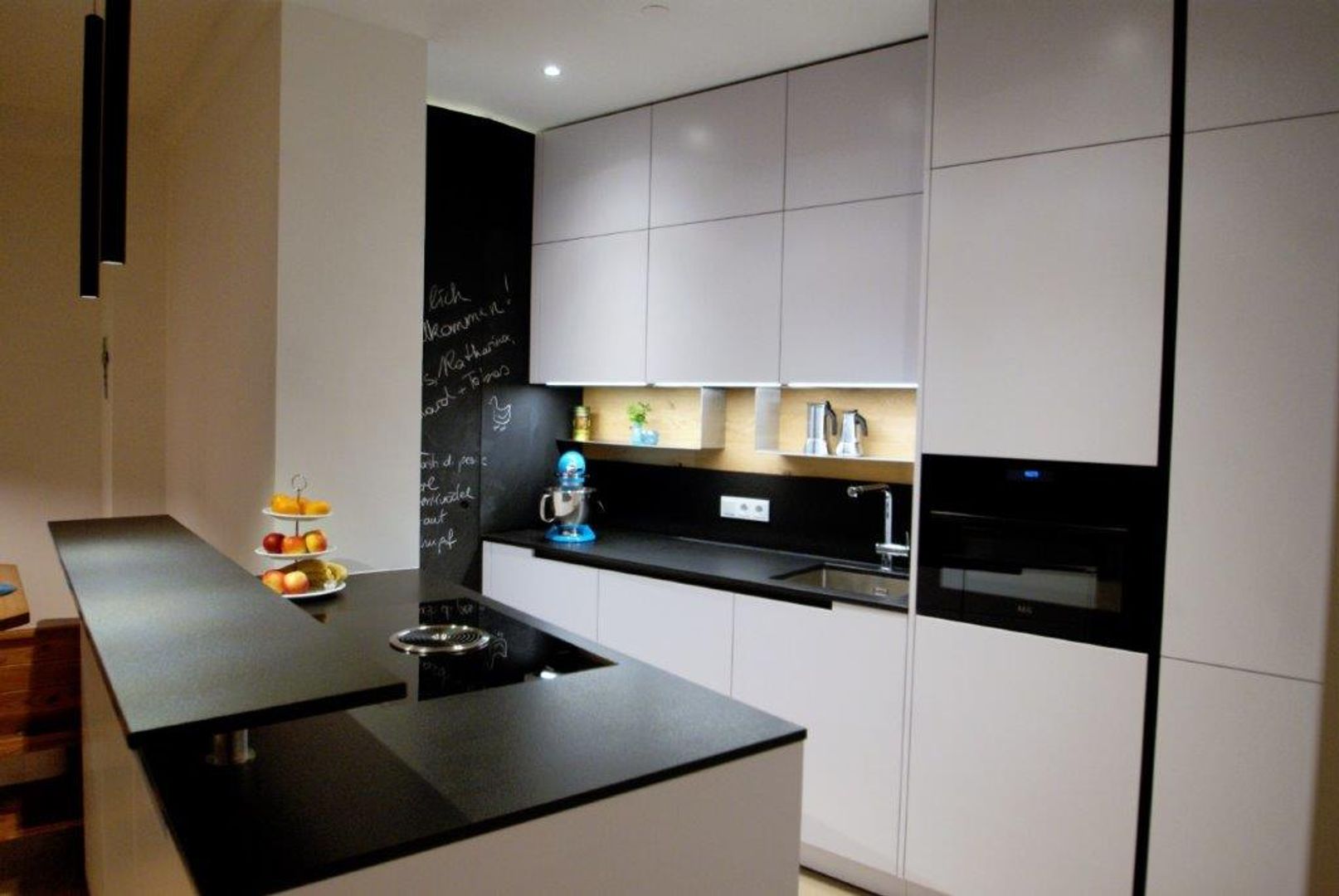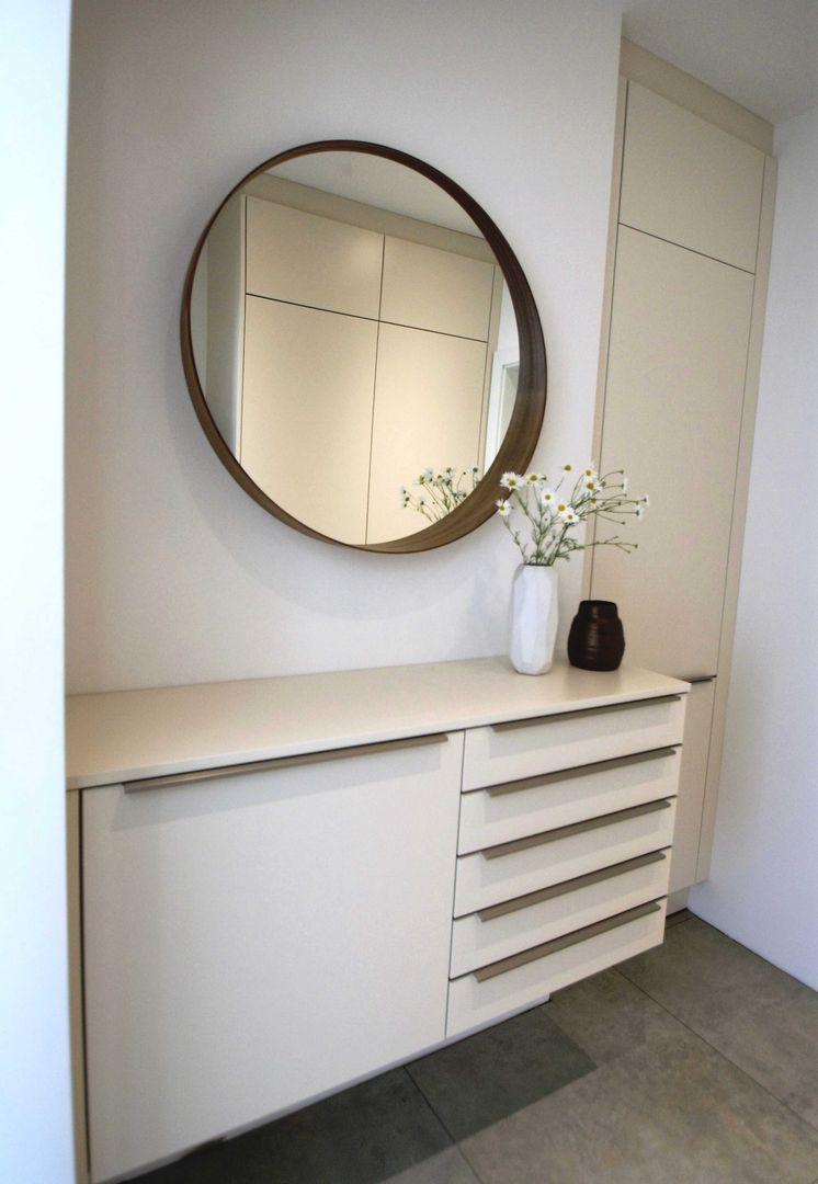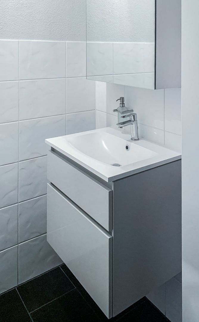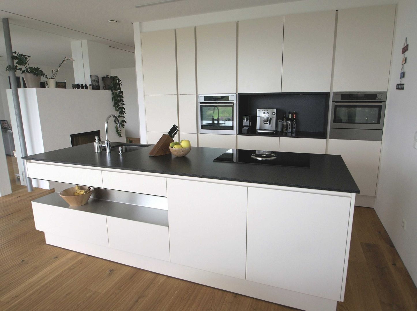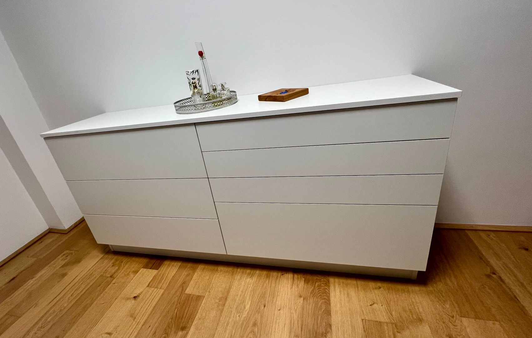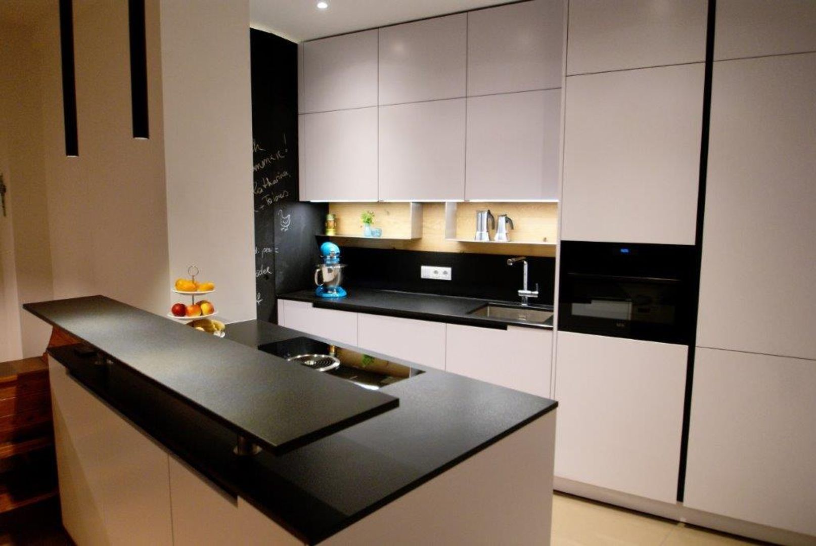 schlichtes Weiß/Grau trifft auf Holz