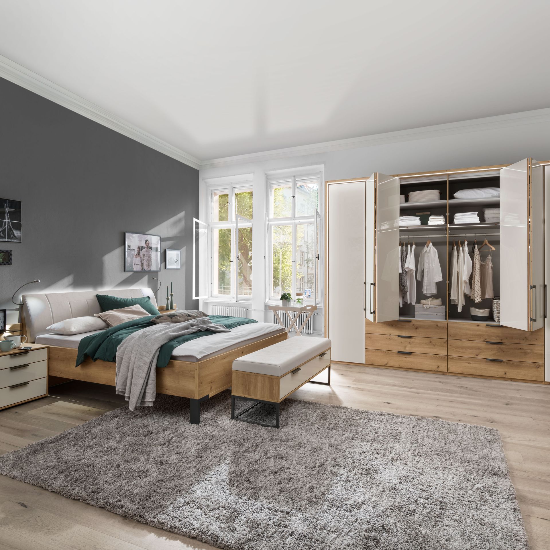 Im Schlafzimmer ist noch immer Privatheit das oberste Gebot. Denn die Schlafzone ist der Bereich, der kaum von anderen Leuten betreten, geschweige denn genutzt wird. Umso wichtiger ist es deshalb, auf die eigene innere Stimme zu hören und abzuwägen, was einem guttut und gefällt. Ein Raum der Ruhe, der im inneren Dialog mit der eigenen Mitte steht, ist ein Garant dafür, dass man jeden Morgen besser in den Tag startet und sich wohlfühlt. Denn man regeneriert im Schlaf mehr Energie und fühlt sich dadurch jeden Tag ein bisschen wie neugeboren.