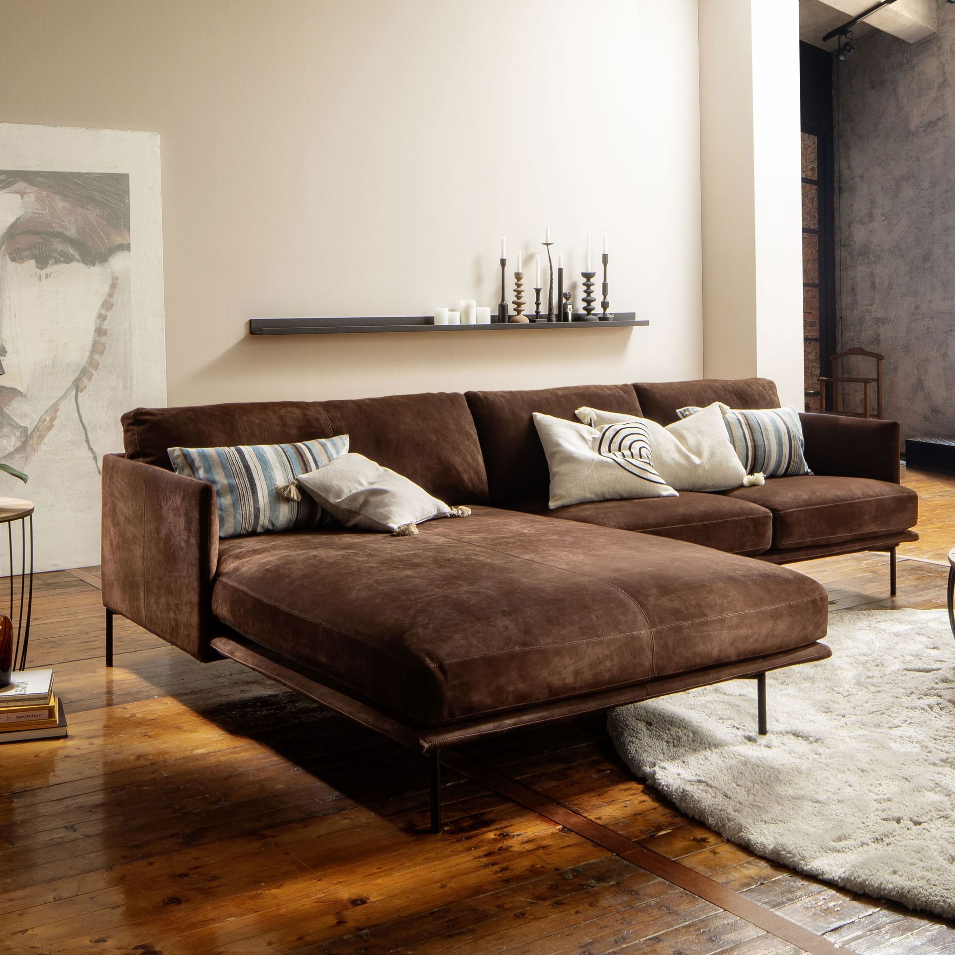 Wohnlandschaften hier, hochbeinige und grazile Sofas als Blickfang da. Auch das Auge wohnt mit. Deshalb schaffen zwischendurch oft schwarze, aber auch glänzend silberne oder farbig lackierte Metallgestelle farbige und designtechnische Kontraste – und wirken dadurch platzsparend und dennoch sehr elegant.